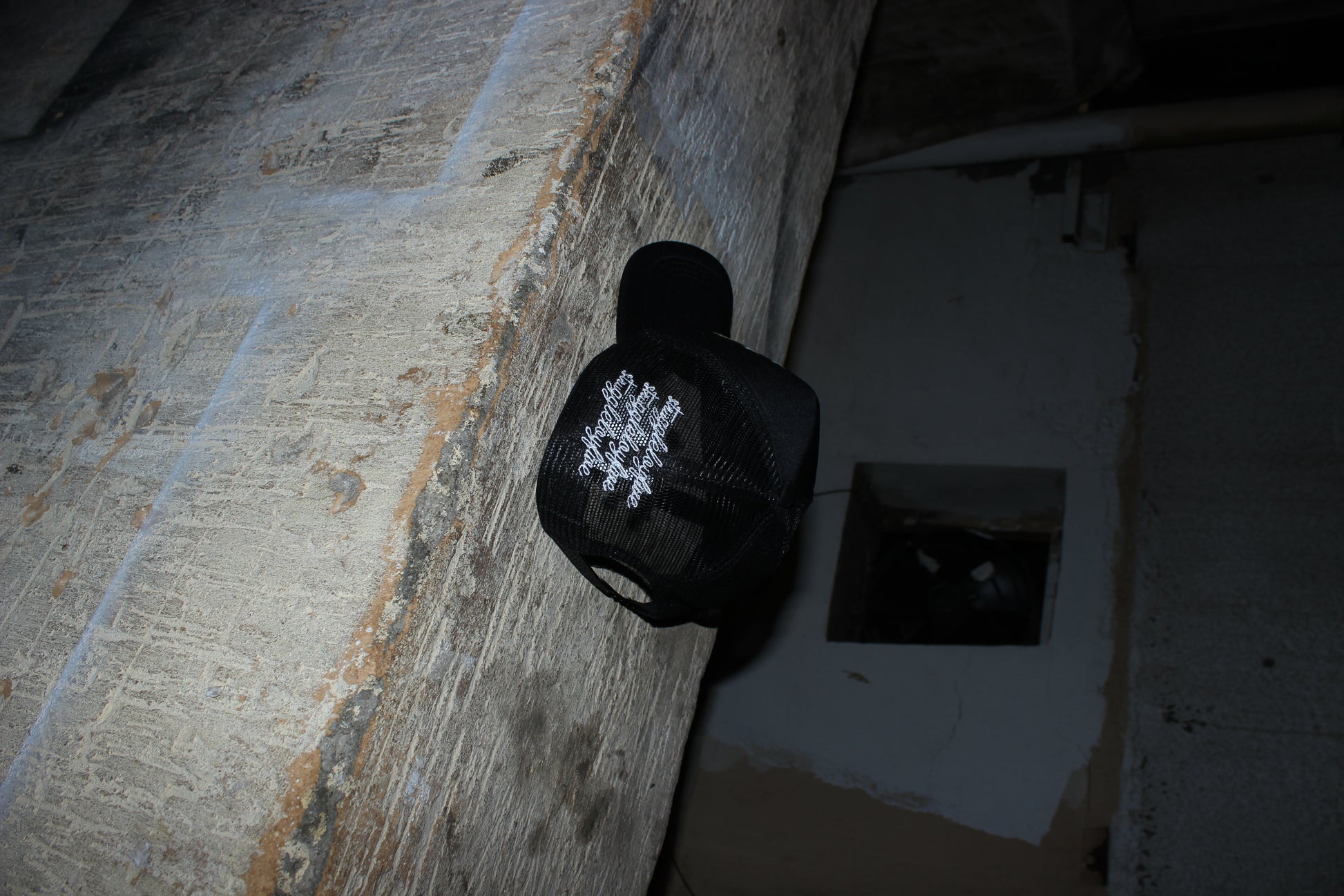 This hat is a bold black trucker cap with a curved brim and mesh backing, blending streetwear grit with confident attitude.